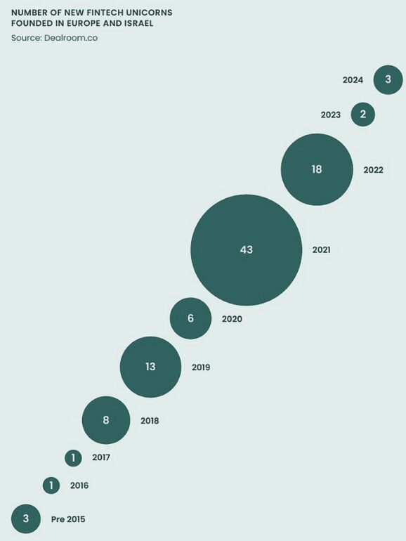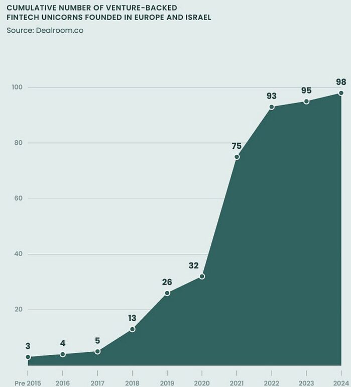 Az Accel és a Dealroom egyébként összesen 98 darab, a fintech területen működő és kockázati tőkét kapott VC-t azonosított Európában és Izraelben – közülük 82 unikornis összesen 625 darab startup keltetőjeként szolgált 2024-ben.