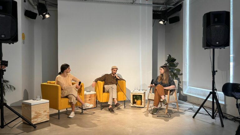 NYITÓKÉP: Bélavári Virág, a a Munch marketingmenedzsere és projektkoordinátora, valamint Mészáros Péter viselkedéselemző, relaxációs terapeuta, költő és kreatívipari szakértő a 2024. évi Startup Safarin, az Adaptérben. Forrás: Adaptér / Facebook